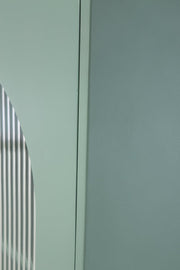 Clearly a stunning statement piece for lovers of contemporary design, this sleek accent cabinet wows on many levels. Magnificent arched fluted glass door panels and goldtone metal hardware exude serious modern flair. And how about that fresh green finish? Two shelves add practicality to the cabinet's striking style.