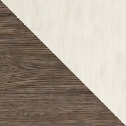 - Two-tone finish (weathered oak top over antiqued white)