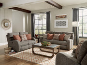 Reyes Collection by Catnapper Furniture Graphite finish Luxuriously soft printed suede fabric Box bordered pillow top design Unique channel-back...